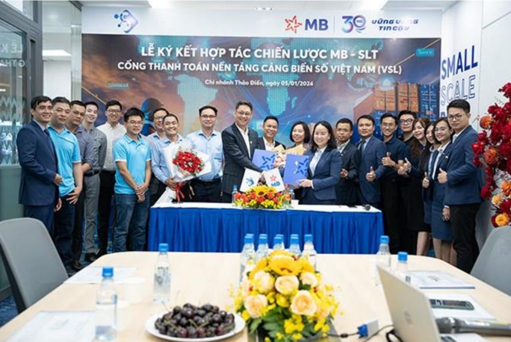 Nhằm chuẩn hóa phương thức thanh toán trực tuyến dành cho DN logistics, hướng đến ứng dụng blockchain trong xác thực tín dụng thư quốc tế (L/C), ngày 5/1/2024, tại chi nhánh MB Thảo Điền đã diễn ra lễ ký kết thỏa thuận hợp tác chiến lược giữa Ngân hàng số MB và Công ty TNHH SLT về tích hợp cổng thanh toán logistics trên nền tảng Cảng biển số Việt Nam (VSL) – MB Payment cho thị trường Việt Nam và nước ngoài.